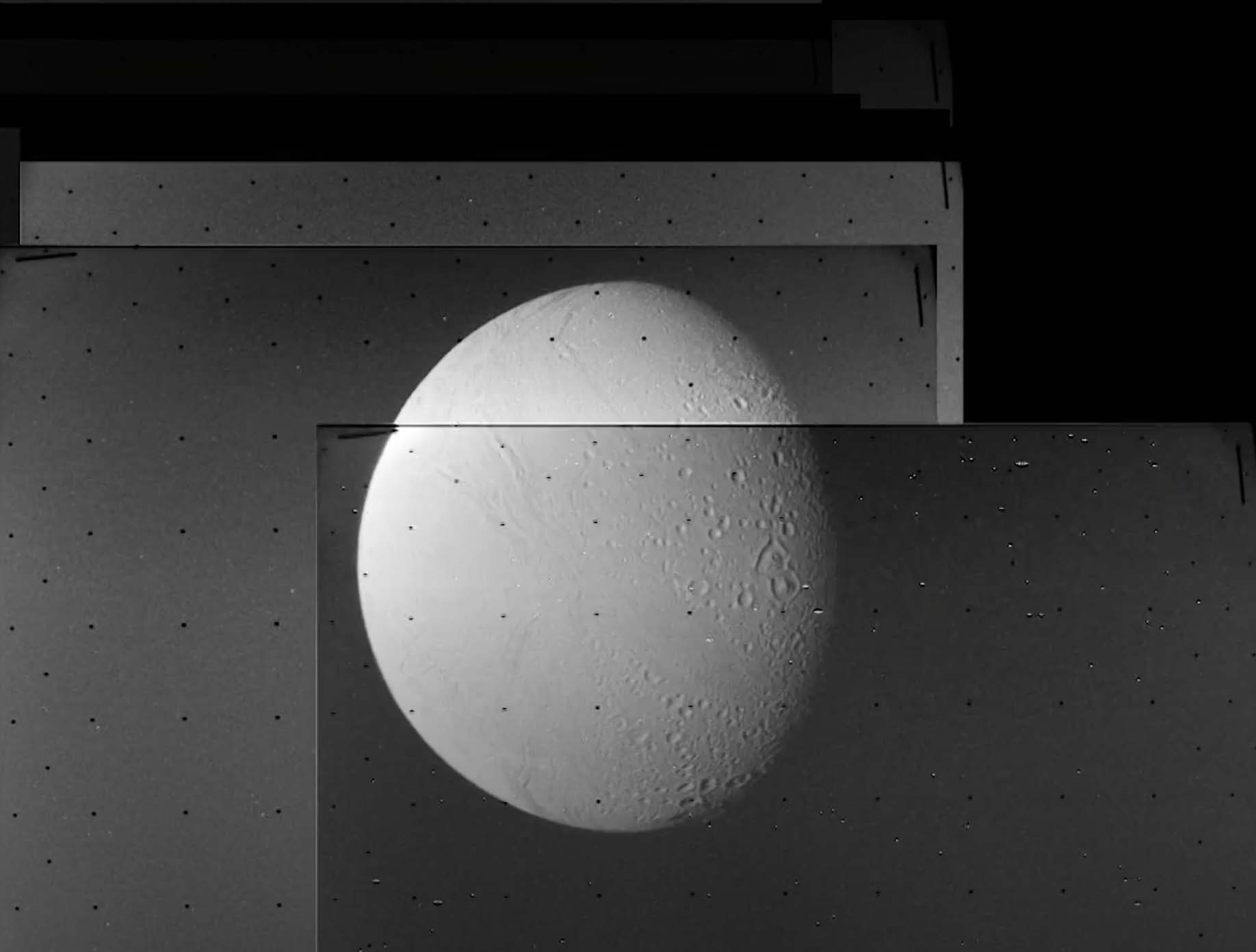 An animation created from the Saturn Encounter scene in the Inside JPL Voyager 1&2 book about the Voyager Mission and the photographs which where taken by the Voyagers when introduced to Saturns moons.