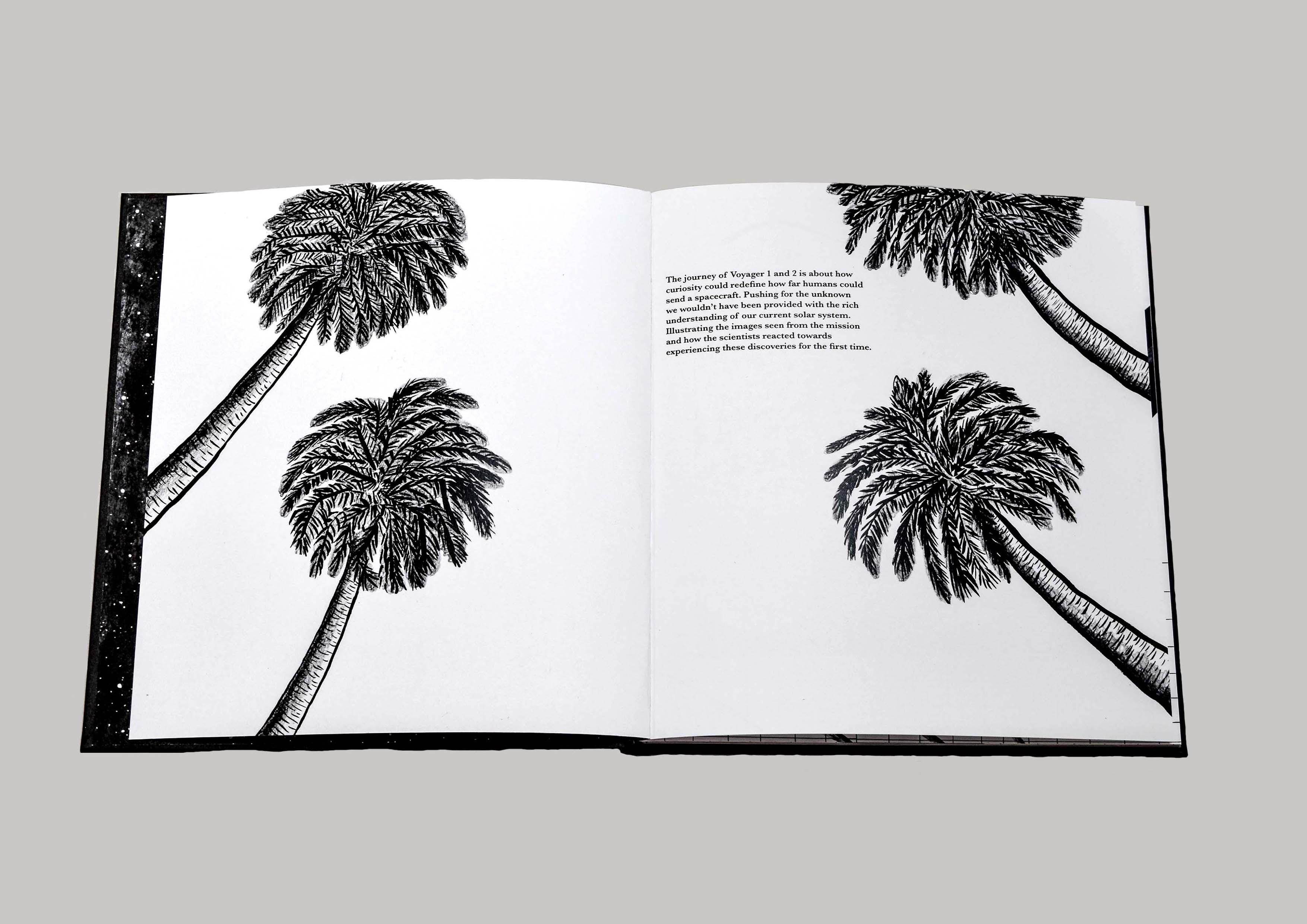 Inside JPL Voyager 1&2 is a visual narrative of the NASA Voyager Mission from the insight of the scientists and members working at the laboratory. Taking the factual and scientific information of the overview and communicating it into a more personal and digestible visual format. For storytellers and curious dreamers of space to engage through the visual narrative through hand inked illustrations.